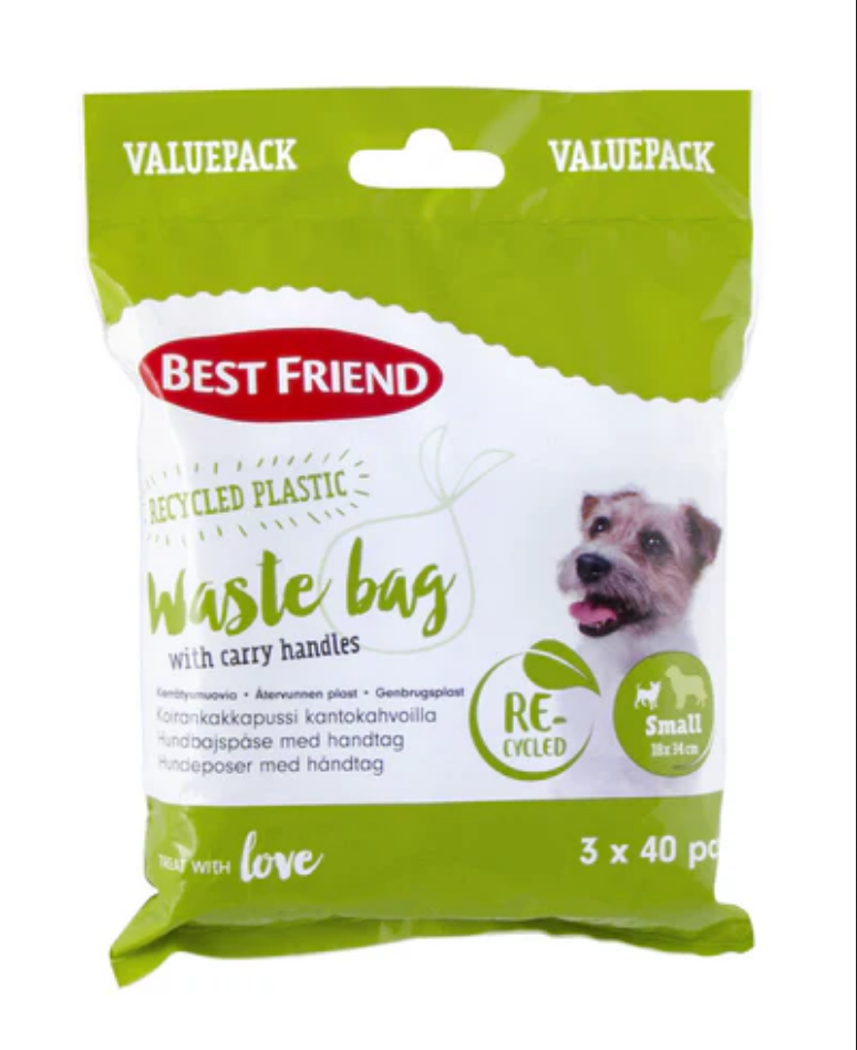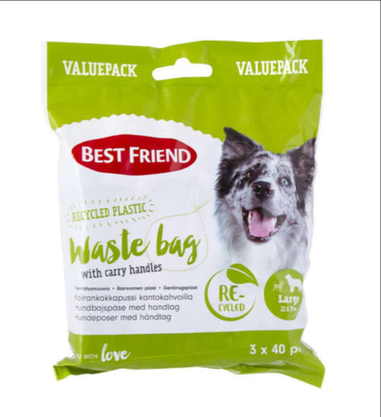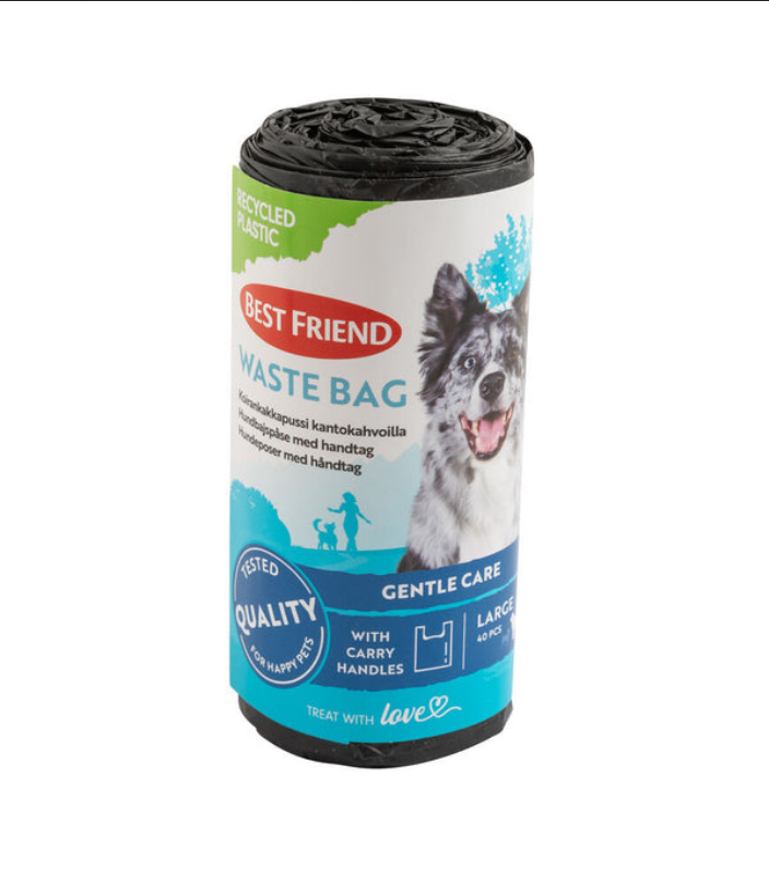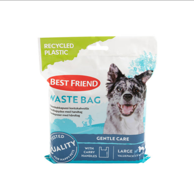 Best Friend Gear Dog Waste Bag on kestävä ja kierrätysmuovista valmistettu koirankakkapussi, joka tekee ulkoilusta sujuvampaa. Pusseissa on kätevät kantokahvat ja erikokoiset vaihtoehdot pienemmille tai isommille koirille.