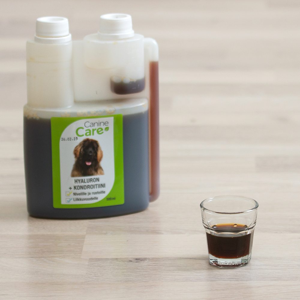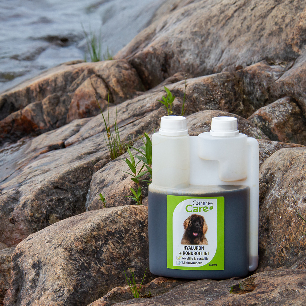 CanineCare Hyaluron ja Kondroitiini on tehokas nivelten hyvinvointia tukeva ravintolisä koirille. Nestemäinen koostumus imeytyy nopeasti ja auttaa ylläpitämään nivelten joustavuutta ja liikkuvuutta kaikenkokoisilla ja -ikäisillä koirilla.