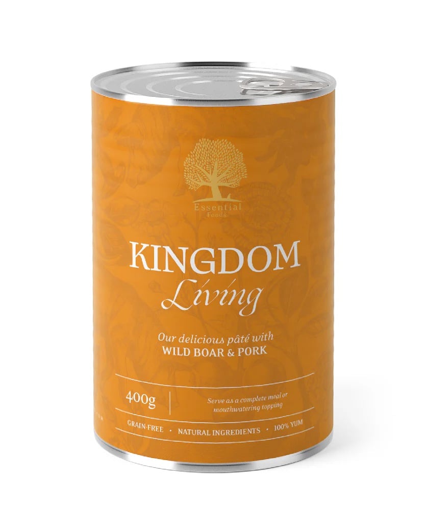 ESSENTIAL KINGDOM LIVING-PATÉ on korkealaatuinen märkäruoka, jossa yhdistyvät villisian ja sian täyteläinen maku sekä huolella suunniteltu ravintosisältö. Se soveltuu aikuisen koiran täysravinnoksi tai suussasulavaksi lisukkeeksi kuivaruoan sekaan tuomaan vaihtelua ja lisämehevyyttä aterioihin.