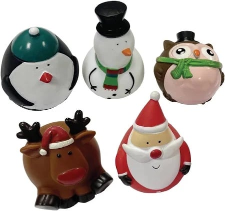 Suloiset ja juhlavat vinyylilelut tuovat joulun tunnelman koirasi leikkeihin. Ne ovat helppoja pitää puhtaana ja tarjoavat varman viihteen jouluun.
