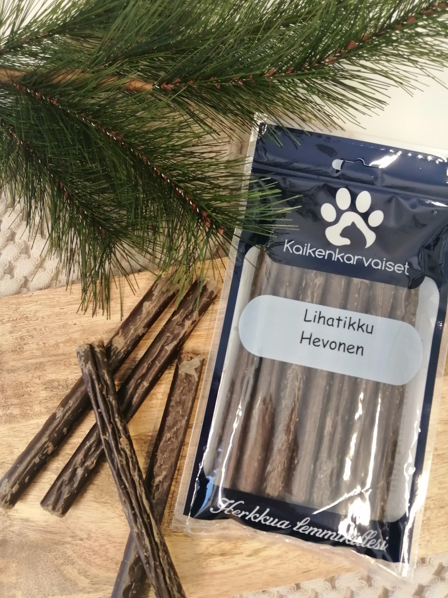 Hevosen Lihatikku on maukas ja helposti nautittava herkku, joka sopii erinomaisesti niin koirille kuin kissoille. Tikku on valmistettu 100 % kuivatusta hevosenlihasta, mikä tekee siitä luonnollisen ja korkealaatuisen vaihtoehdon päivittäiseen palkitsemiseen tai herkutteluun.