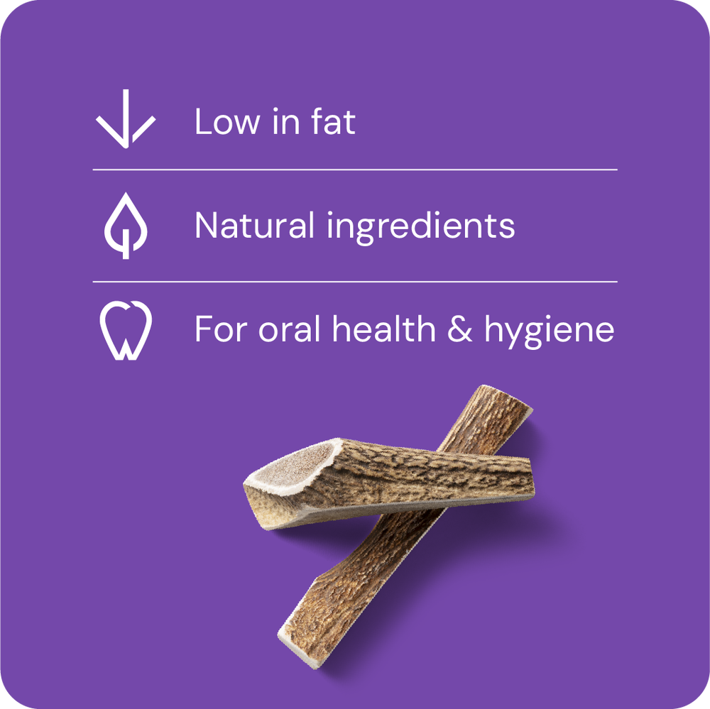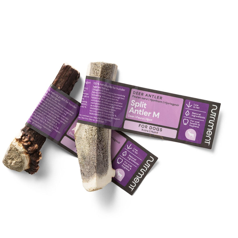 Nutriment Antler -purutuotteet tarjoavat täysin luonnollisen ja pitkäkestoisen pureskeltavan vaihtoehdon kaikenkokoisille koirille. Ne valmistetaan luonnollisesti irronneista peuran sarvista, jotka ovat täynnä ravintoaineita ja tukevat suun terveyttä ilman lisä- tai säilöntäaineita.