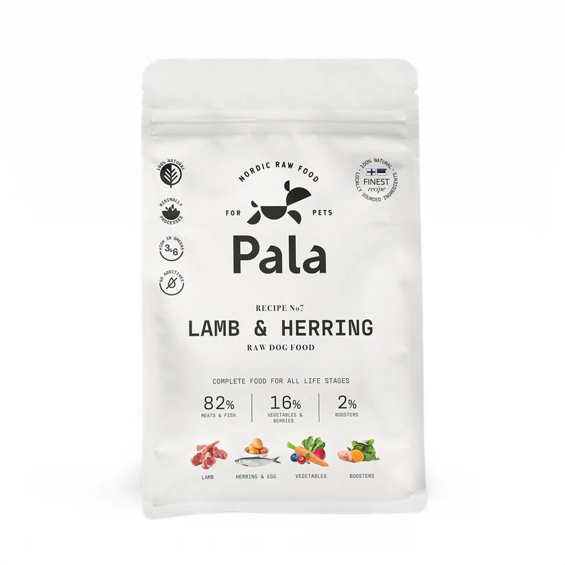 Lampaanliha & Silli – Resepti #7 on tasapainoinen, ravinteikas raakaravinto koirille, joka yhdistää laadukkaan lampaanlihan, atlantinsillin, munat ja vihannekset luonnolliseksi kokonaisuudeksi.