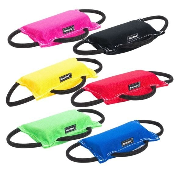 Pehmeä Raddog Ringotyyny on suunniteltu aktiiviseen treenikäyttöön ja koiran motivoivaan palkkaamiseen. Tyyny tuntuu koiran suussa mukavalta, mutta kestää silti toistuvaa käyttöä. Kolmen kahvan ansiosta lelua on helppo käsitellä ja hallita, olipa kyseessä luoksetulopalkka, eteenlähetys tai vetoleikki.