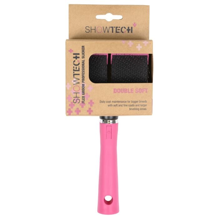 Unohda nykivä ja epämiellyttävä harjaus! Show Tech+ Flex Groom Slicker on suunniteltu tekemään turkinhoidosta nopeampaa, helpompaa ja ennen kaikkea kivuttomampaa sekä sinulle että lemmikillesi. Harjan joustava pää myötäilee lemmikin kehon muotoja, jolloin harjaus tuntuu miellyttävältä myös herkemmillä alueilla.