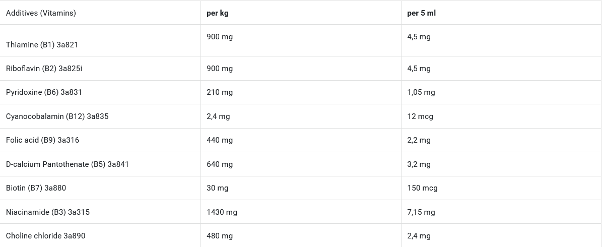 Valmiste on erittäin hyvin imeytyvä, ja sen nestemäinen muoto tekee annostelusta helppoa – voit lisätä sen suoraan ruokaan tai juomaveteen. B-vitamiinien tarve kasvaa esimerkiksi karvanvaihdon, kasvun, tiineyden, imetyksen tai aktiivisen treenin aikana.